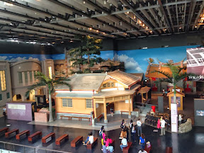 一樓大廳就看到時間車站,站內的列車,摸擬了火車車廂,搭乘時需取票、剪票上車,配合影片情節還會有搖晃感,片長約十分鐘,讓搭乘的遊客都有深入其境之感,提醒您,時光列車有放映時間場次,當然我這種隨性來到的人,還是不受時間約束,只能說下次有緣再去體驗了。
