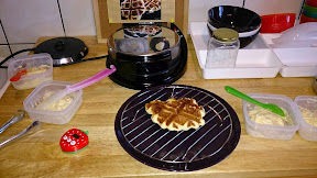 民宿還有管家準備好的鬆餅麵糰,隔天這群老人家好早就起床了,反正閒著也是閒著,我們就開始準備烤鬆餅,還蠻有趣自己動手做的經驗!
