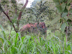 不過今天跟大象邂逅的運氣倒是很不錯。進保護區沒多久,轉個彎我們就碰到兩隻大象,之後又是兩隻,在遠遠處是另一組家庭,4~5隻,好像這趟旅行至少有可以交待了,大家可以比較悠哉去享受那些植物還有一些人際的互動。