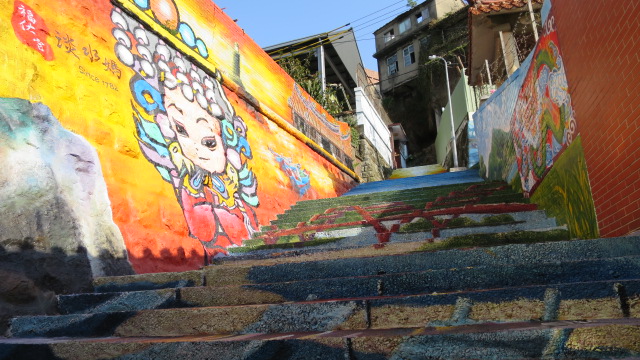 不過因為老人家一起出來,我們想說那上午時間在淡水街上亂吃亂走一番,剛好也享受了冬天的暖陽。沿著中正路走,中間帶小朋友們走階梯上去重建街,欣賞一下3D彩繪,然後鑽小路來到紅樓,再下去跟他們會合。當然馬偕醫館 & 滬尾教會也是要停留一下下的。只是考量老人家不能走階梯,那小白宮那條路線就省略了。