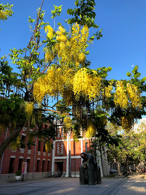 阿勃勒現在在南台灣真的狂妄地綻放,無論南大、高鐵特區、成大校園,東豐路上,大概都可以看到黃金雨的身影,真的跟南台灣的太陽互相輝映啊!